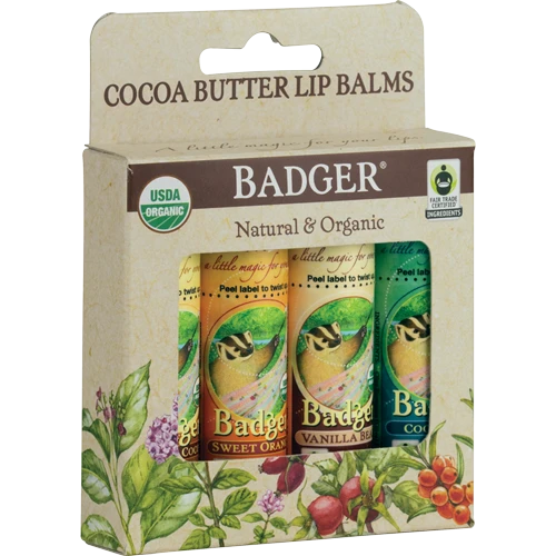 Dreamy, creamy and smooth come to mind when describing our Fair Trade Cocoa Butter Lip Balms in these four popular flavors: Creamy Cocoa, Sweet Orange, Vanilla Bean, and Cool Mint. Our organic cocoa butter is processed at low temperatures to retain its naturally emollient and antioxidant-rich properties. And we use only organic essential oils for flavoring, never any artificial sweeteners or fragrances. Each stick is .25 ounces of earthly goodness.