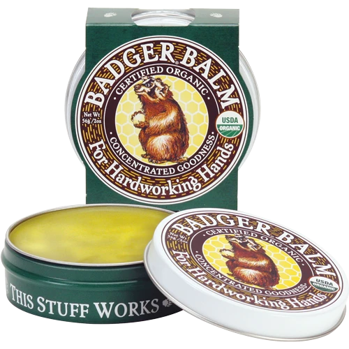 Relief for Hardworking Hands. Badger Balm (formerly called “Badger Healing Balm”) is our original product, and it works so well that we’ve built an entire company around it! Created by Badger Bill to moisturize his rough, cracked carpenter’s hands during a fierce New England winter, you can trust us when we say this stuff will soothe and soften your driest, hardest, and roughest skin but is gentle enough to use every day. Smells great with the light minty and somewhat earthy aroma of wintergreen. If you should ever find yourself lost in some vast, uncharted wilderness, you want this balm with you!