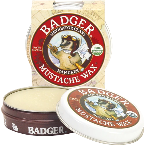 Never underestimate a Badger! Easy to restyle and wash out, this Mustache Wax features extra hard Carnauba Wax for medium hold and a high glossy shine; Western Shea Butter for adhesion; and Beeswax for pliability. No parabens, GMOs or other harsh chemicals, only nourishing herbal extracts and essential oils.