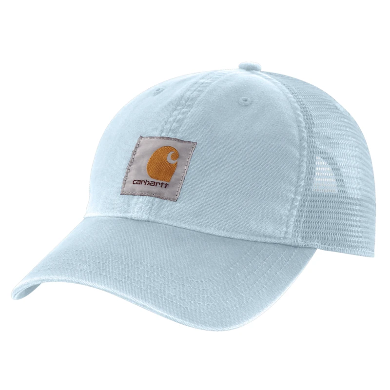 100% cotton washed canvas with 100% polyester mesh back