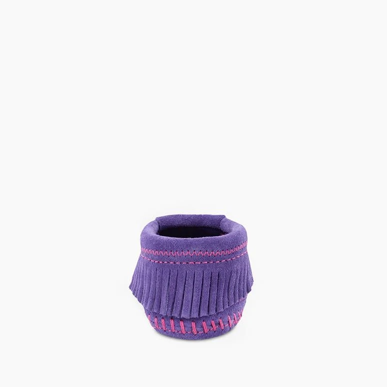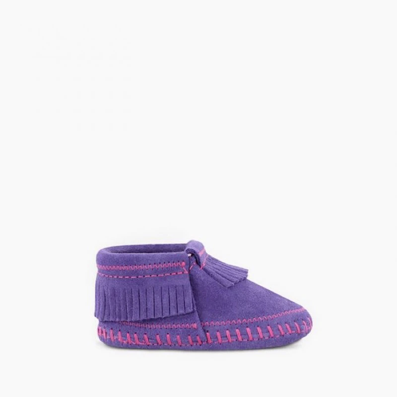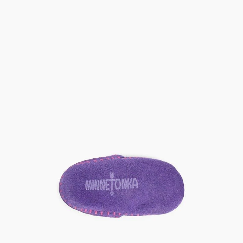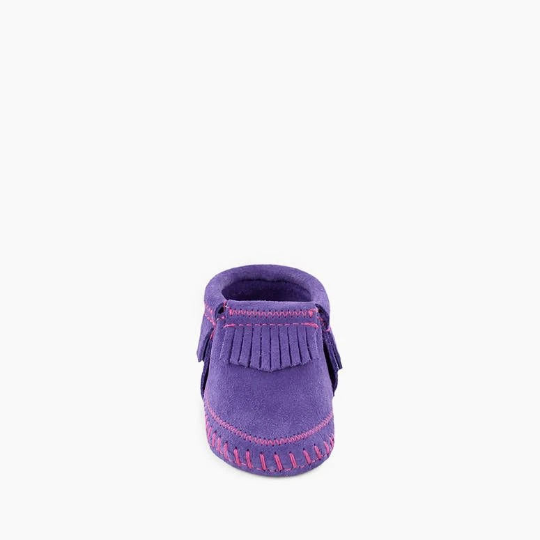 From park to play date, colorfully coordinate your Mini-me with a new suede style. This baby moccasin features a soft suede upper and sole with elasticized opening for easy on and off.