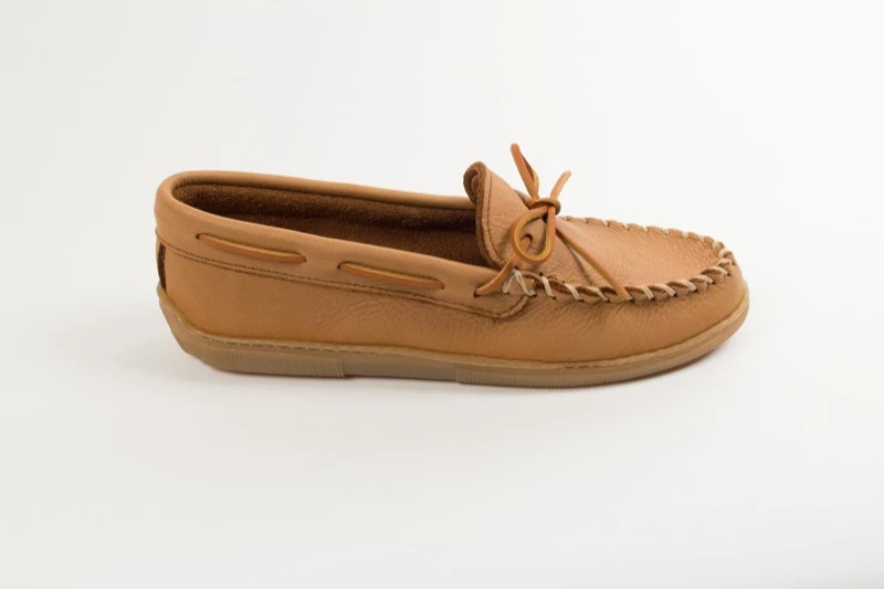 Combine the stylish, timeless design of a loafer with the durable construction of thick and genuine moosehide and you get these incredible moccasins. Soft and supple moosehide provides a super comfortable feel. A lightweight rubber sole gives these men’s moccasins just enough flex. Perfect with khakis for the office or shorts or jeans for a more casual look, these versatile moccasins will be a go-to favorite for a long time to come.