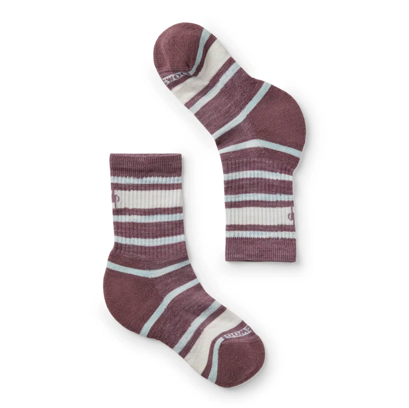 With light cushioning on the entire bottom of the foot, our Kids’ Hike Light Cushion Striped Crew Socks are created to help kids love the hike. They are made from responsibly sourced Merino wool, for natural odor control, temperature regulation, and breathability. Plus, they’re designed for a perfect fit on the foot and in the shoe, and they have a flat knit toe seam and an elasticized arch brace for comfort and support. To top it all off, their stripey design adds style for any fashion-focused young hiker.